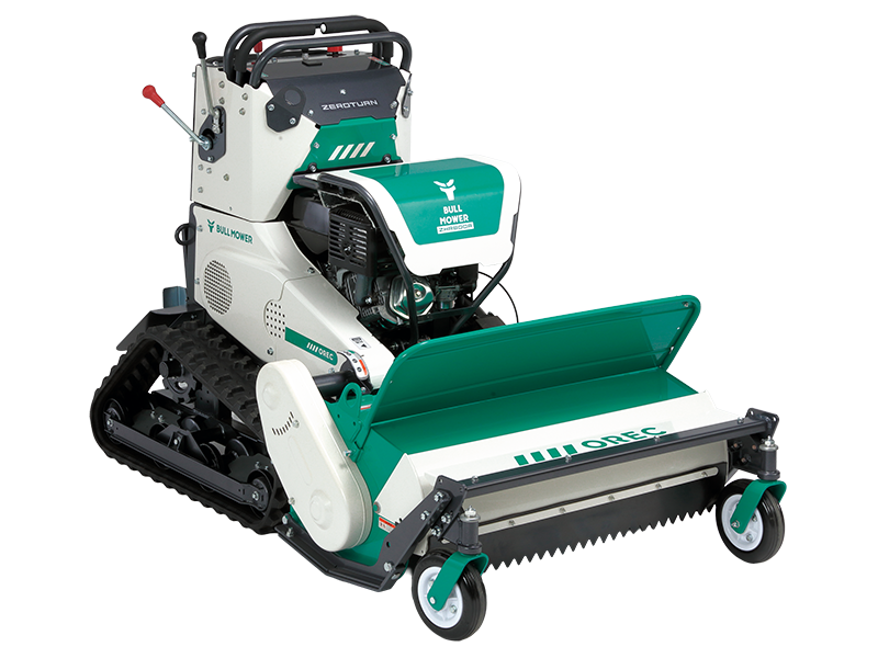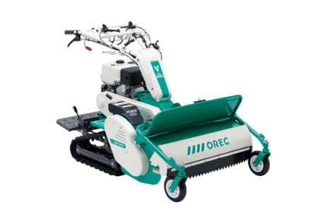 排気量70㏄のパワーと最高車速2.6km/hでパワフルな草刈りを実現。また、スパイク車輪が地面に食い込み、4輪駆動で傾斜地の草刈りも快適に行います。