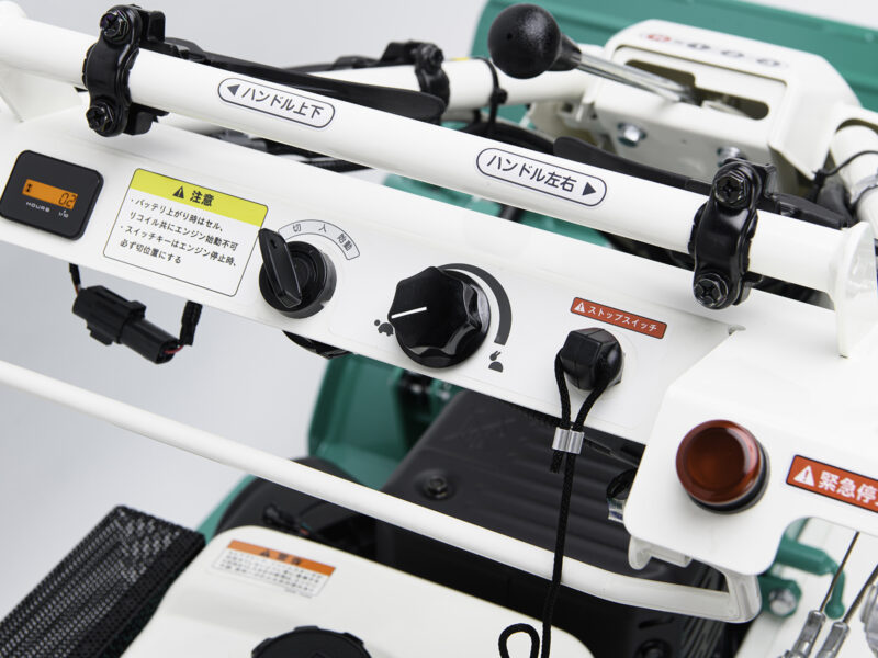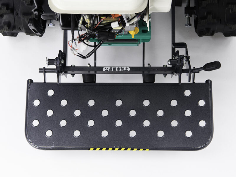 高耐久カバーや立乗りステップ標準、手元で刈高調整など高機能です