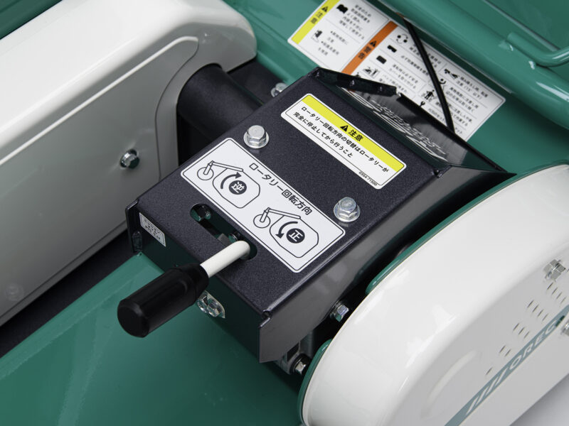 ロータリー正転切替で前方への飛散を軽減